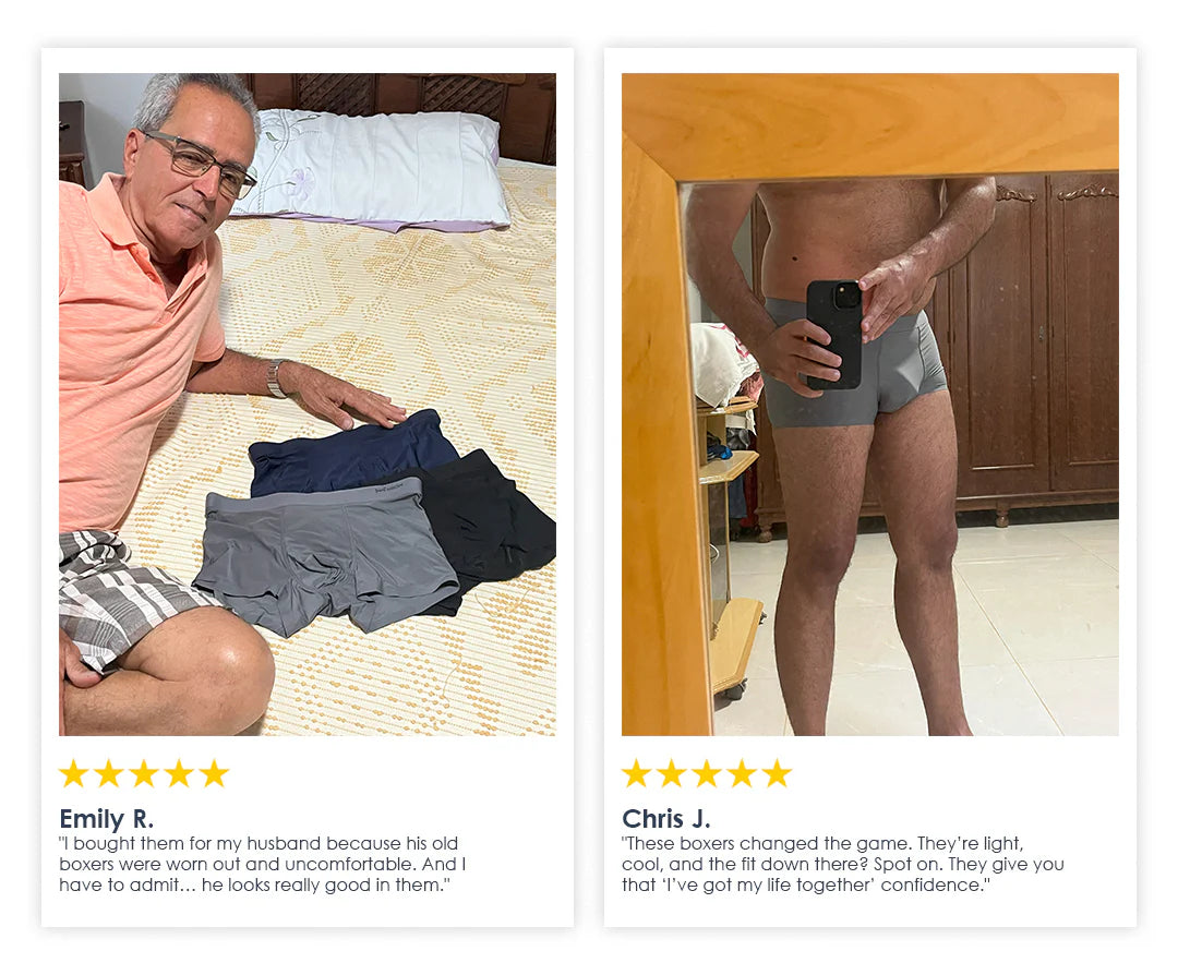 Mer enn bare undertøy, Ice Boxer Pro™ er laget for å oppgradere din daglige rutine med stil, friskhet og frihet. Den avkjølende berøringen, den perfekte passformen og ekte pusteevne gir komfort hele dagen, samtidig som den forbedrer formen din subtilt og gir volum der det teller – et design som partneren din ikke vil overse.