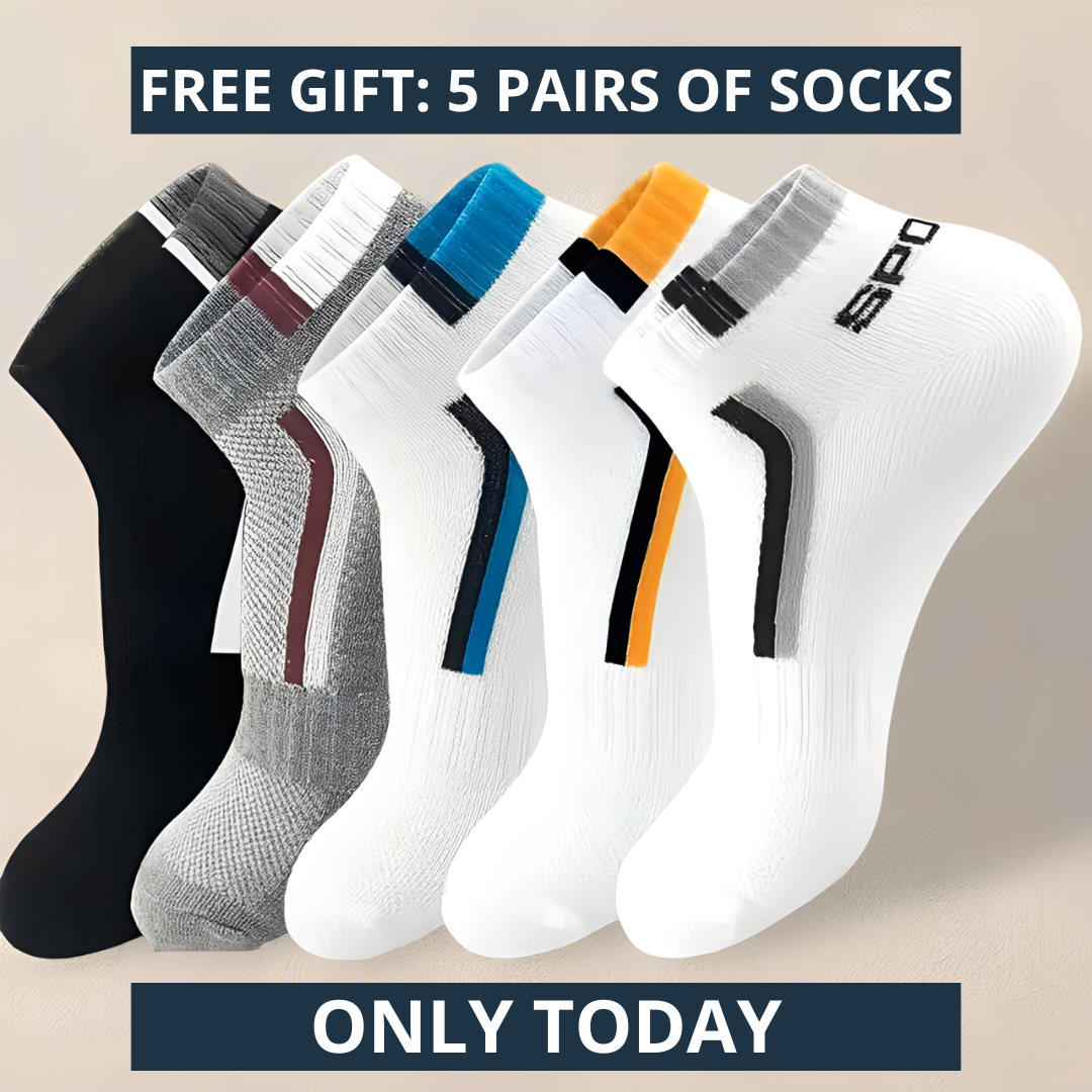 Når du sikrer deg settet ditt nå, vil du motta 5 par premium 100 % bomullssokker helt GRATIS.