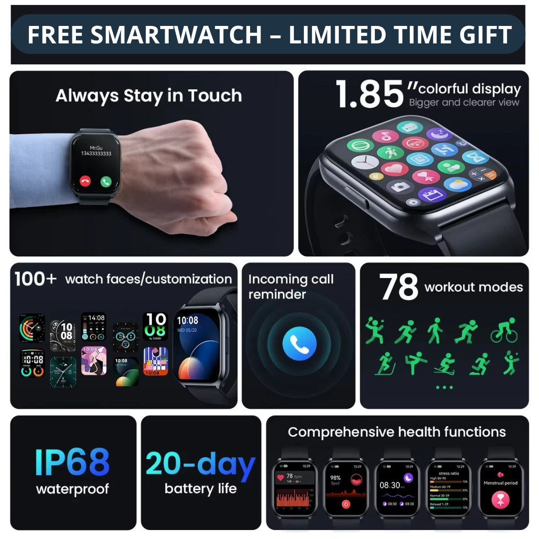 Øk hver treningsøkt med denne luksusgaven: en Premium Smartwatch helt gratis. Dette eksklusive tilbudet er kun tilgjengelig i dag – begrenset lager og kan bli utsolgt når som helst. Sikre paret ditt nå og få denne elegante bonusen før den er borte!