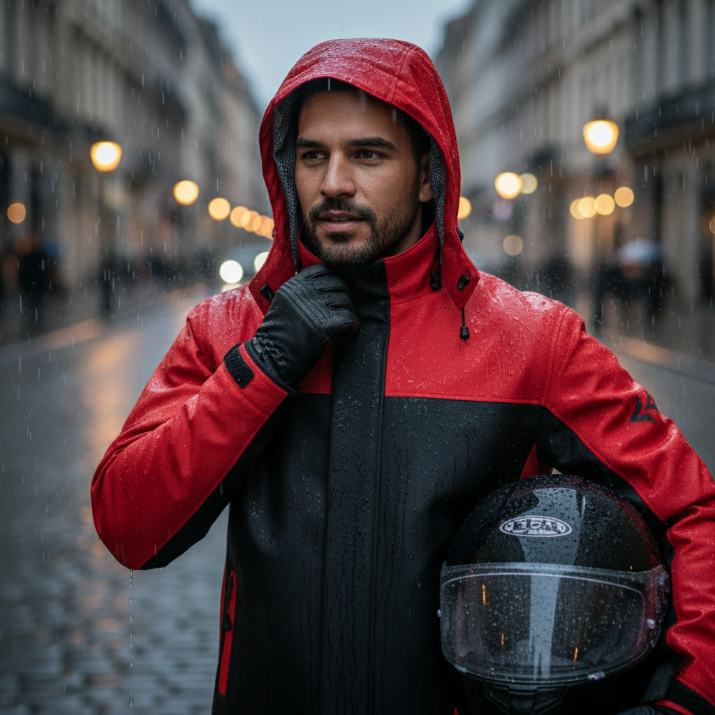 Utviklet for motorsyklister og friluftsentusiaster, har jakken og buksene forsterkede sømmer, uttrekkbar hette og 100 % vanntett ytelse. Fra bygater til fjellstier, StormGuard™ holder deg tørr med stil.