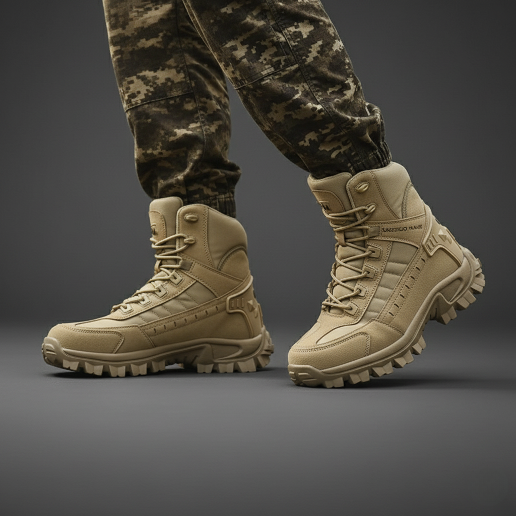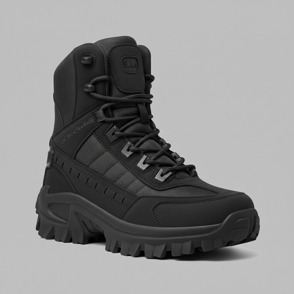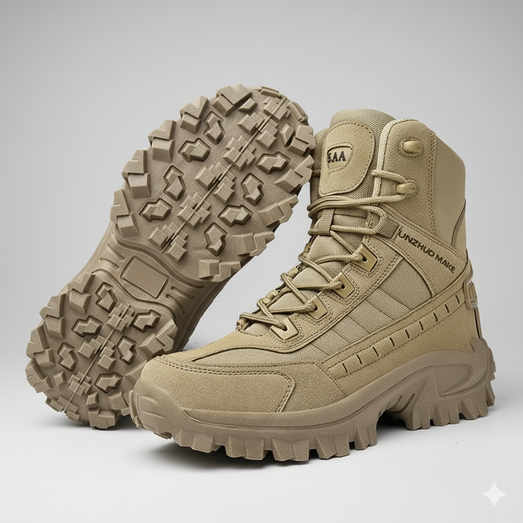 En dyptgående, sklisikker såle gir trekkraft på våte eller ujevne overflater, mens en polstret innersåle og polstret interiør absorberer støt for varig komfort.
